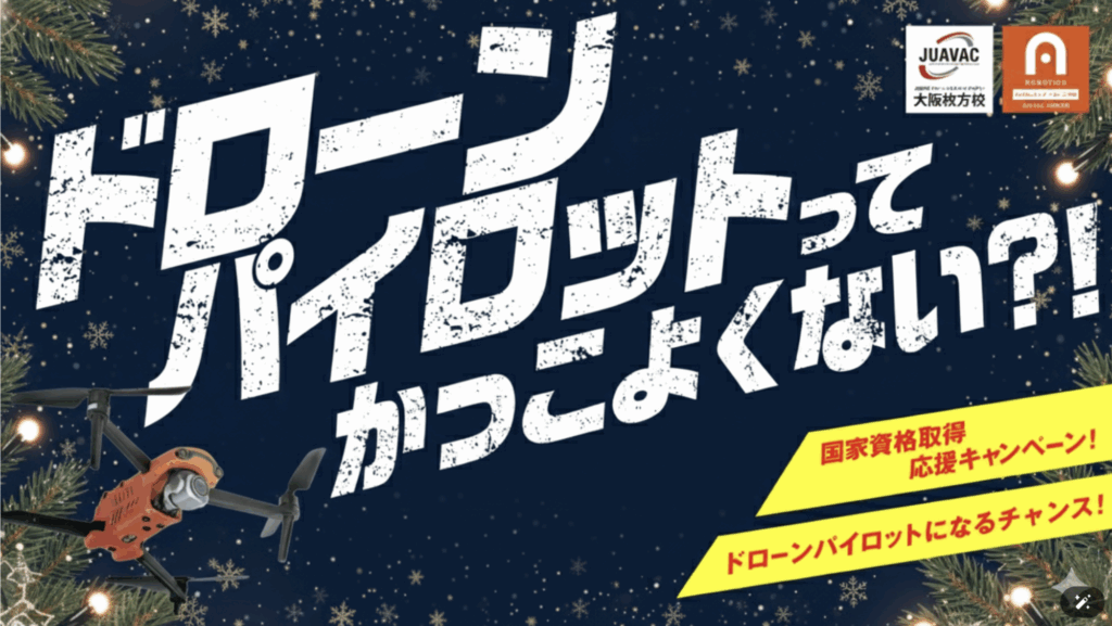 JUAVACドローンエキスパートアカデミー 大阪枚方校では、お得に受講できる様々なキャンペーンを行なっております。