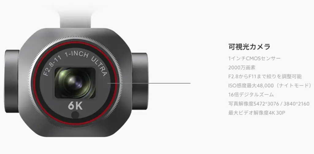 6K 可視光カメラを搭載しているため、暗い環境でも高解像度でノイズの少ない画像を撮影でき、ターゲットに関する洞察を提供し、警察の取り締まり、巡回検査、捜索、救助のシナリオを強化します。