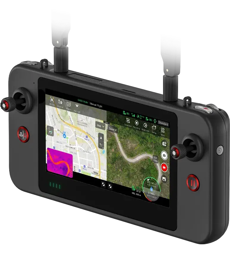 Autel SkyLink画像伝送技術を搭載し、デュアル信号・デュアル受信システムを実現。画像伝送の耐干渉性が向上し、伝送距離は最大12キロメートルに達します。2.4GHz/5.2GHz/5.8GHzの適応型周波数ホッピング伝送に対応し、電磁干渉に基づいて最適なチャネルを自動的に選択することで、強力な耐干渉性を実現します。