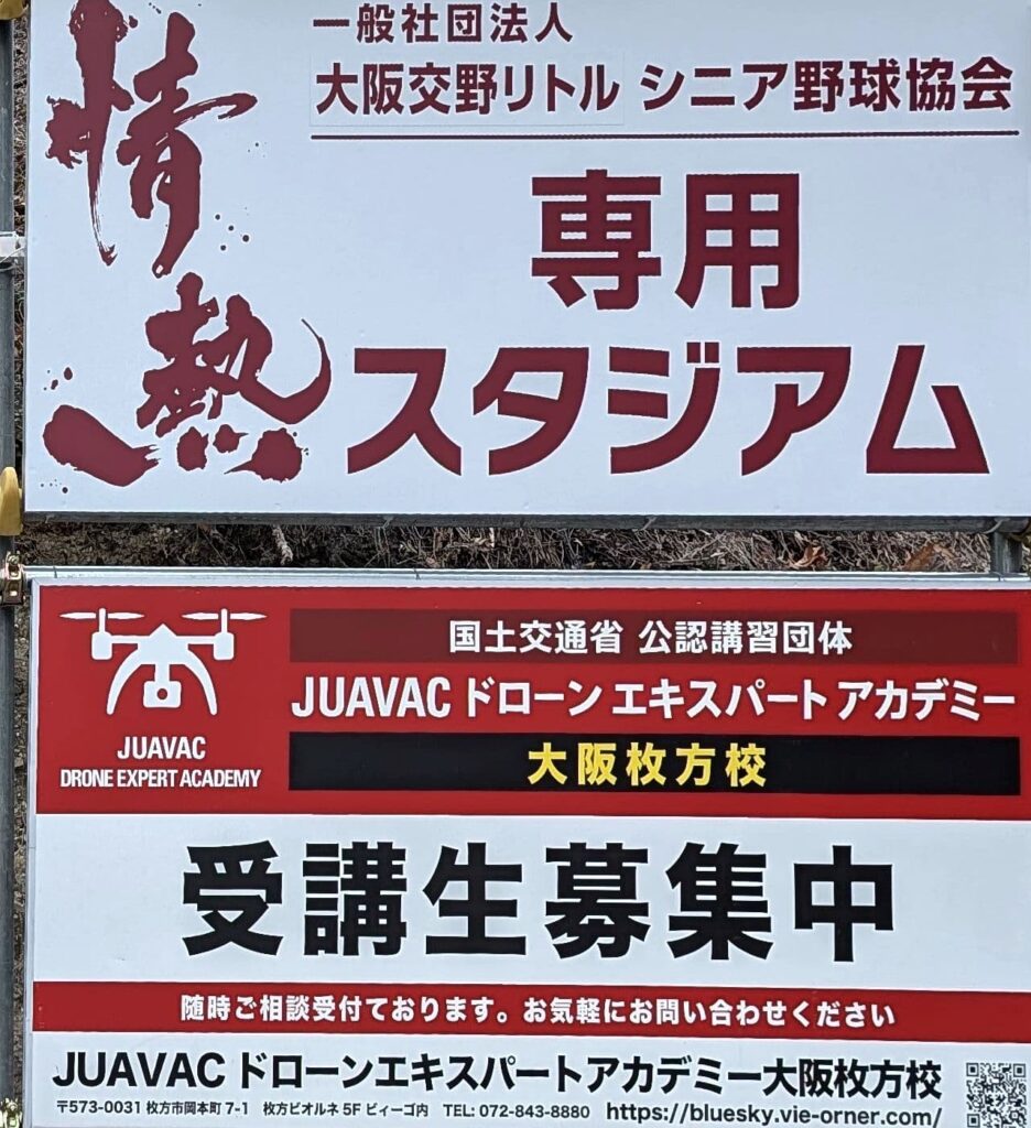 JUAVAC ドローンエキスパートアカデミー枚方校の新たな実技会場として、枚方市尊延寺に新しい練習場を設けました。