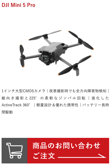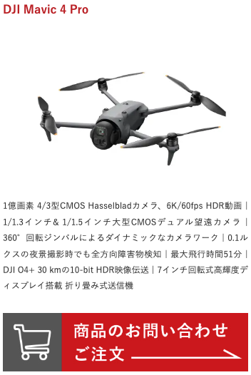 | ドローン例 | ・DJI Mini 5 Pro Fly Moreコンボ(DJI RC-N3付属) 128,700円(定価)▶︎122,000円(講習割引価格) (各種セッティングサービス、会場レンタルサービス2時間付き) ・DJI Mavic 4PRO 355,850円(定価)▶︎337,850円(講習割引価格) (各種セッティングサービス、会場レンタルサービス2時間付き) |