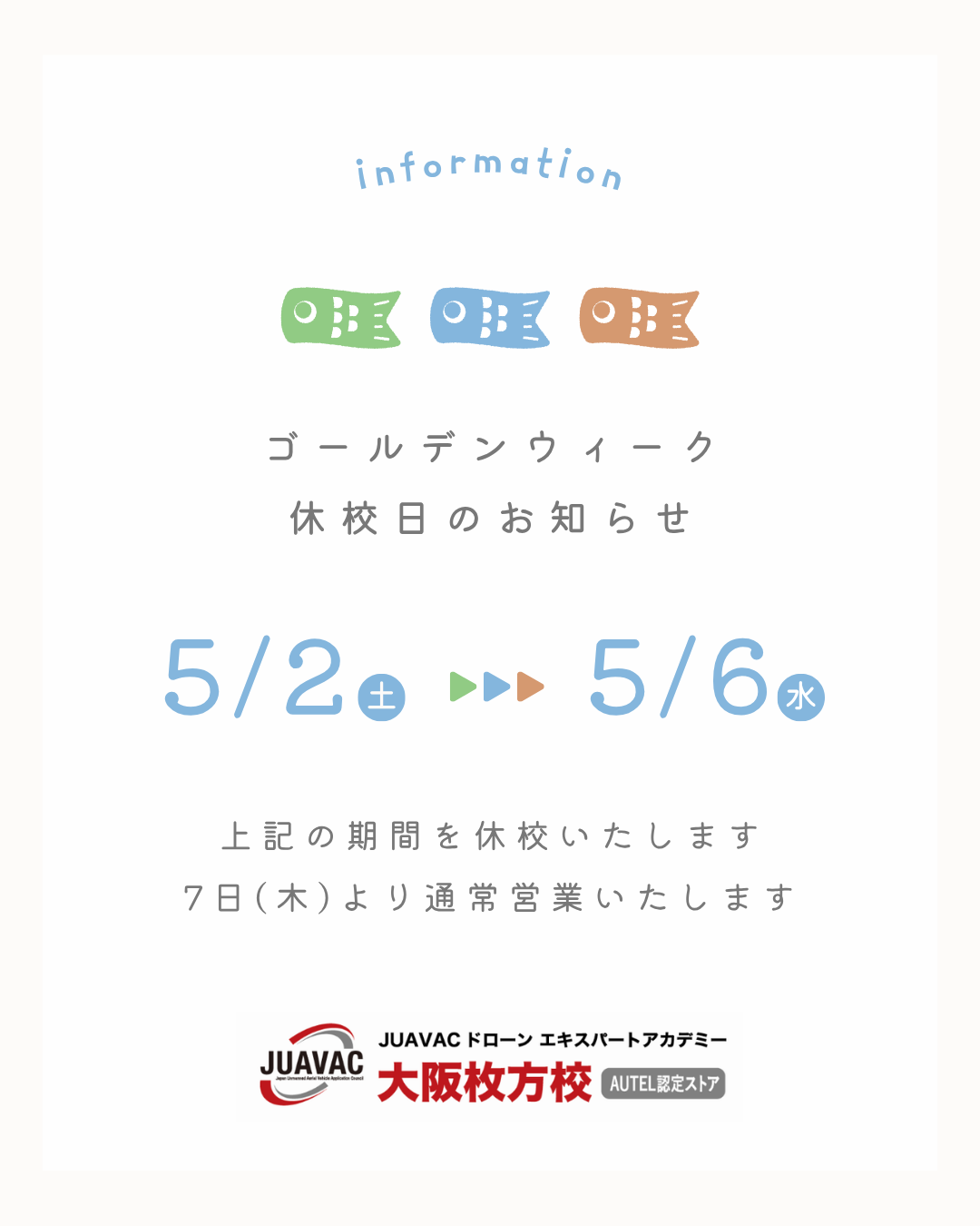 GW休校のお知らせ