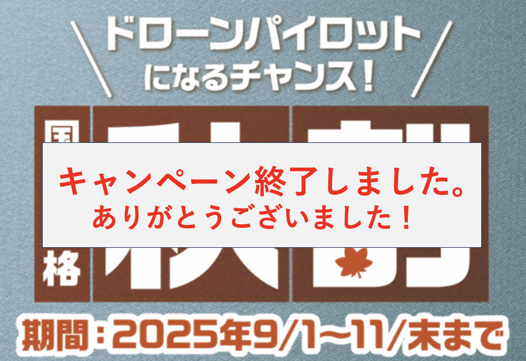 | 内容 | 無人航空機の資格取得と同時に、憧れのAUTELドローンを手に入れたい方へ。 今なら、AUTELドローンが15%OFFで購入できる特別プランをご用意! |